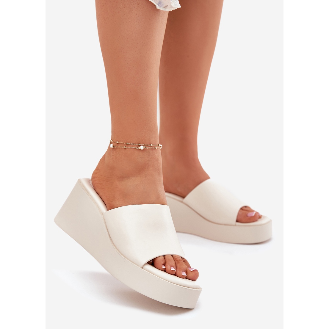 Läpät asetetaan vakaalle kiilalle, jonka korkeus on 7,5 cm, mikä ei vain lisää strategiaa, vaan myös optisesti pidentävät jalkoja. Heidän yleinen muotoilu tarkoittaa, että he sulautuvat täydellisesti sekä kesäpukuihin että materiaalihousuihin, jolloin voit luoda tyylikkäitä ja muodikkaita tyylit.