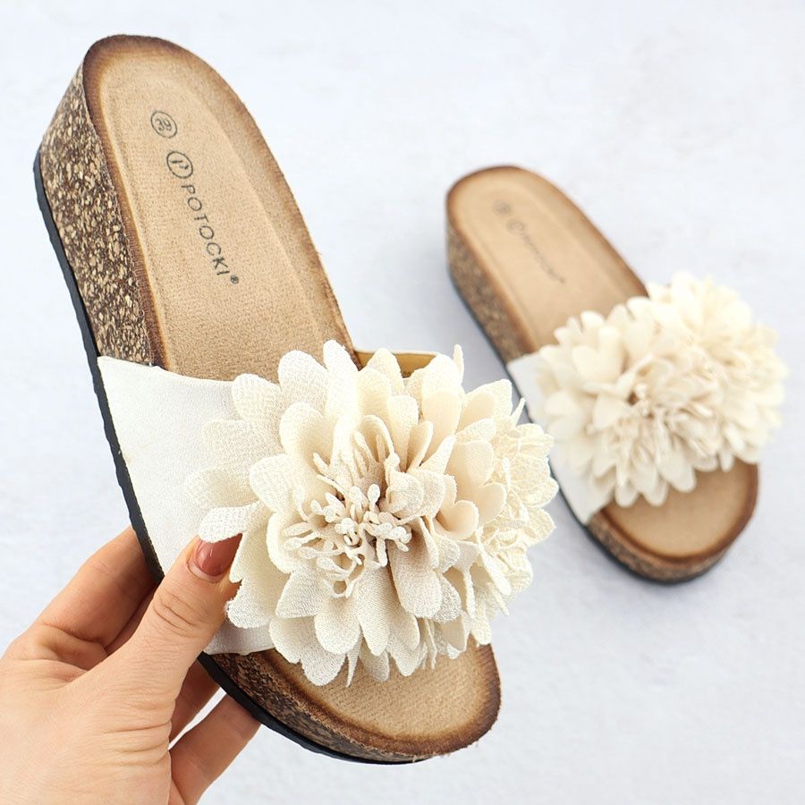 Yksityiskohdat: Naisten flip -Flops kiiloilla Beige Flowers from Potocki GN17300