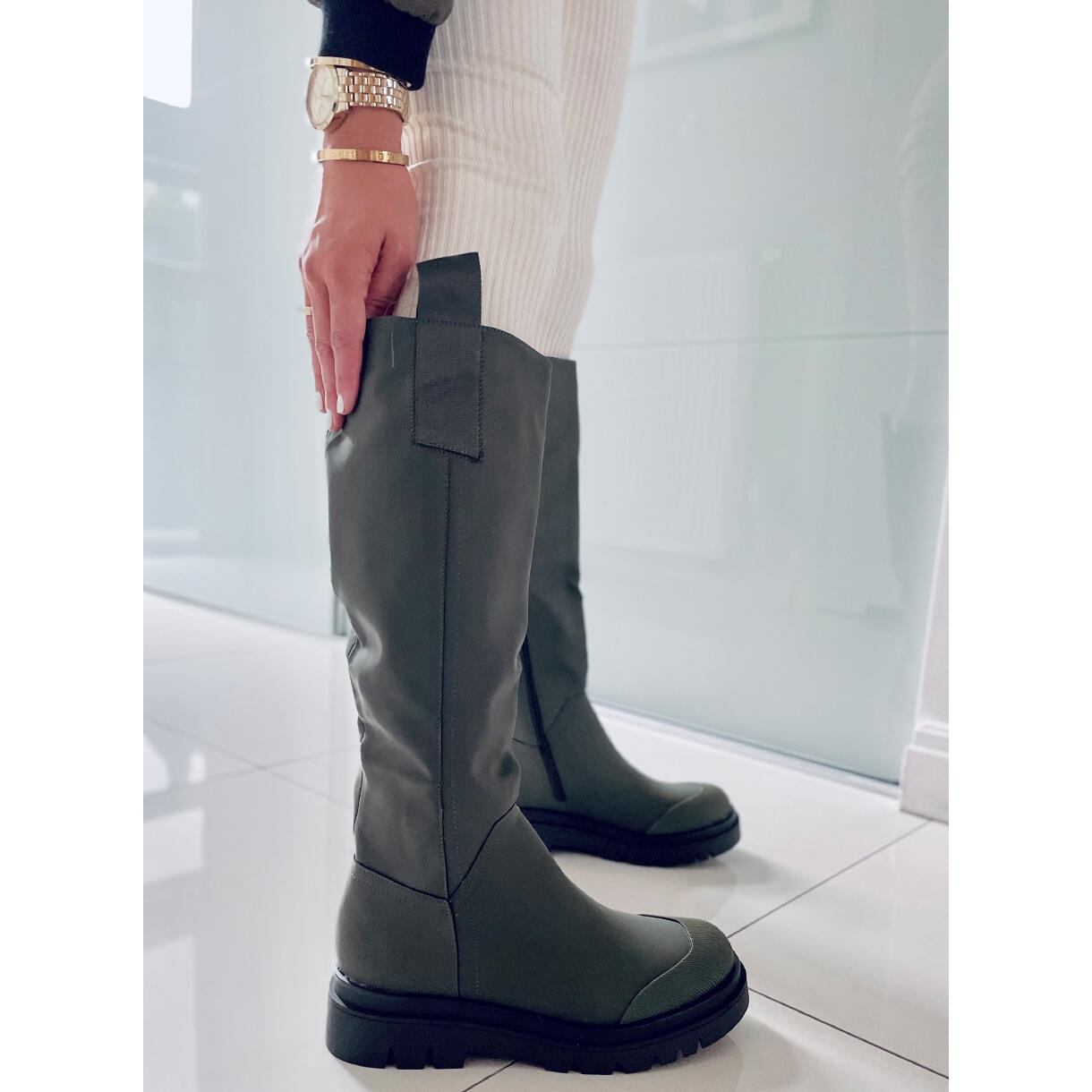 Tasaisen kantapään ja korotetun alustan ansiosta nämä mallit eivät ole vain mukavia, vaan myös lisäävät keveyttä jokaiseen askeleeseen. Polviin asti ulottuva saappaan korkeus pidentää optisesti jalkoja ja sopii täydellisesti useisiin tyyleihin, arkisesta tyylikkäämpään.
