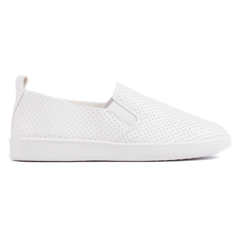 Yksityiskohdat: Naisten harjakattoinen, vaaleanvalkoinen slip-on