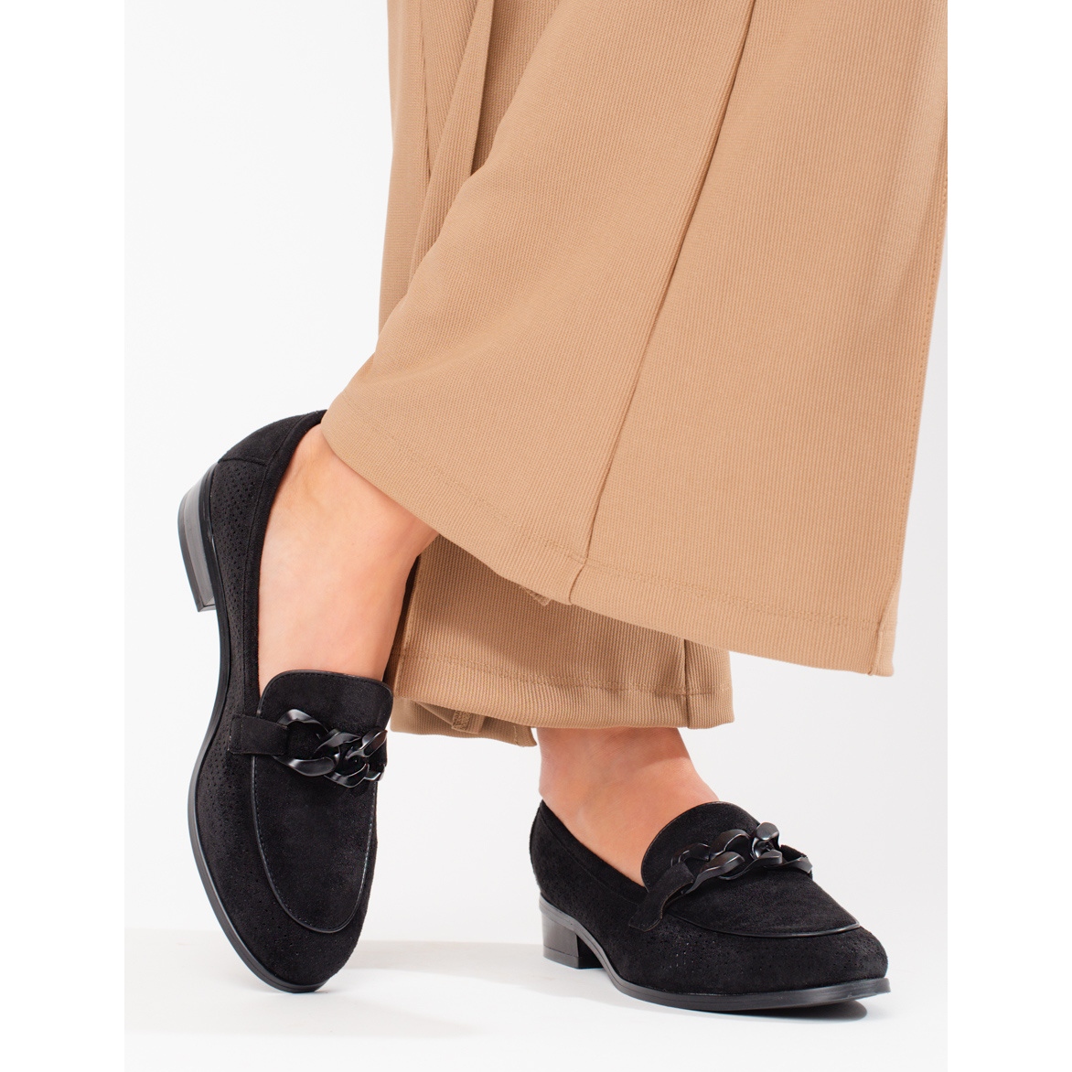 Tyylikäs ja mukava W. Potocki -leipät, joissa on aukiotila klassisella mustalla värillä. Ekologisen mokkanan yhdistelmä, jolla on luonnollinen iho sisällä, tekee kengistä tyylikkäitä, ilmavia ja mukavia joka päivä ja juhlallisiin tilanteisiin.