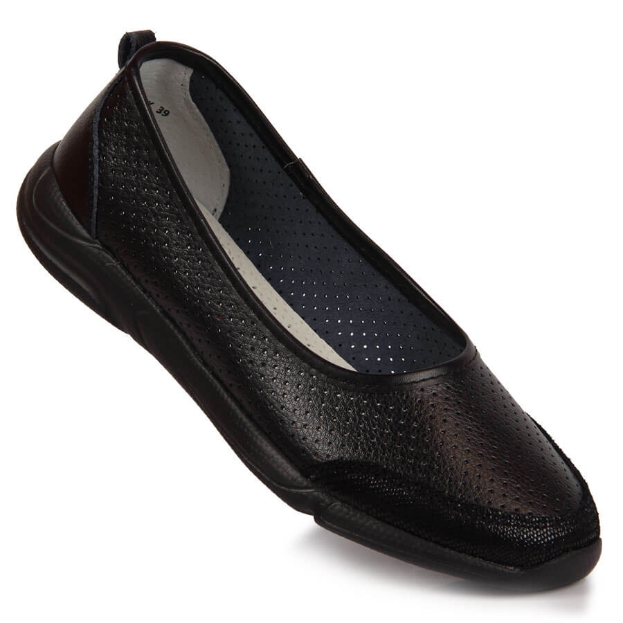 Yksityiskohdat: Naisten harjakattoiset nahkabalerinat mustat eVento 3621
