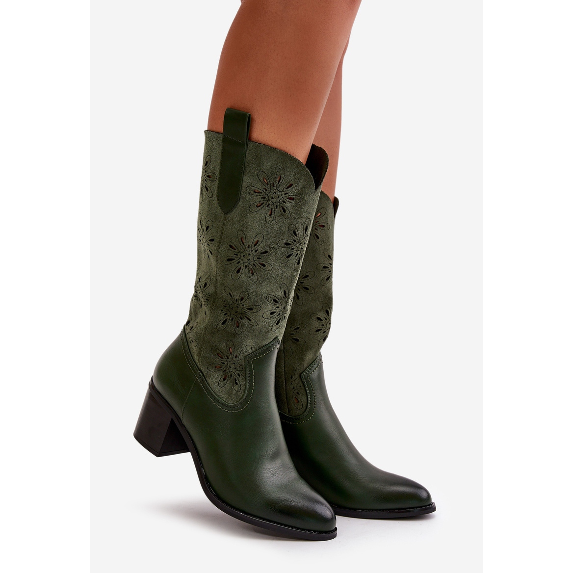 Jezzi Jezzi Naisten harjakattoiset pohkeen keskipitkät saappaat Eco Suede Green Nevilosista vihreä