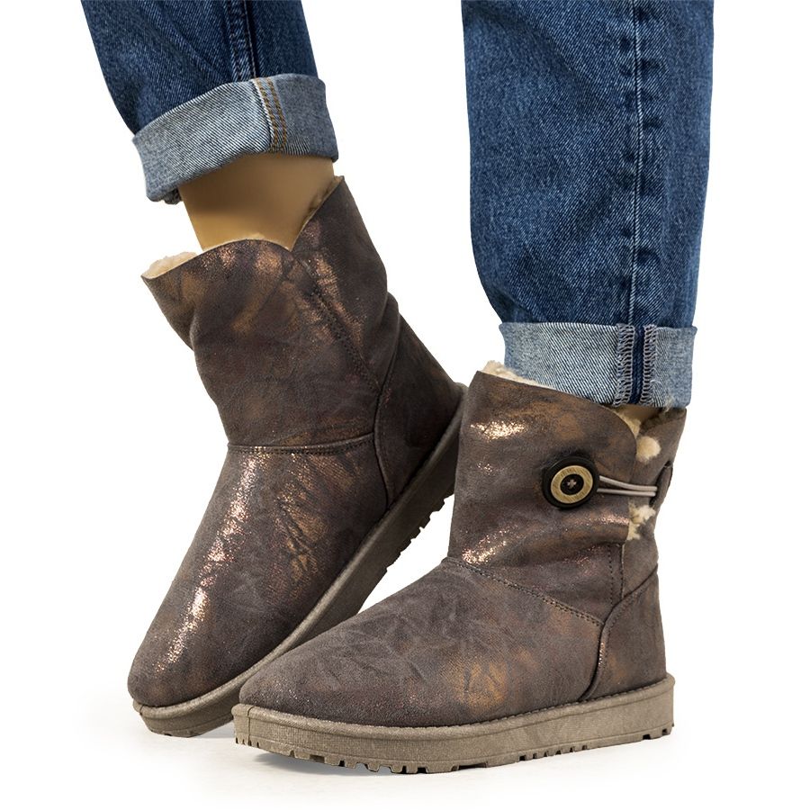 Yksityiskohdat: Naisten harmaat ja kultaiset lumisaappaat Kangalta kultainen