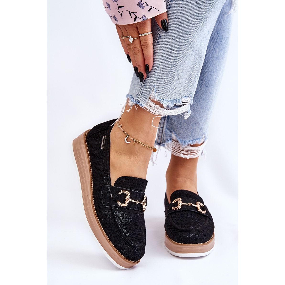 Tutustu naisten mustien PM1-tason mokasiinien tarjoamaan eleganssiin ja mukavuuteen. Nämä klassiset kengät, jotka on asetettu herkälle kiilalle, yhdistävät tyylin ja mukavuuden ekologisen mokkanahkaa muistuttavan materiaalin ja pehmeän, luonnollisen nahkapohjallisen ansiosta, joka tarjoaa mukavuutta kaikissa tilanteissa.