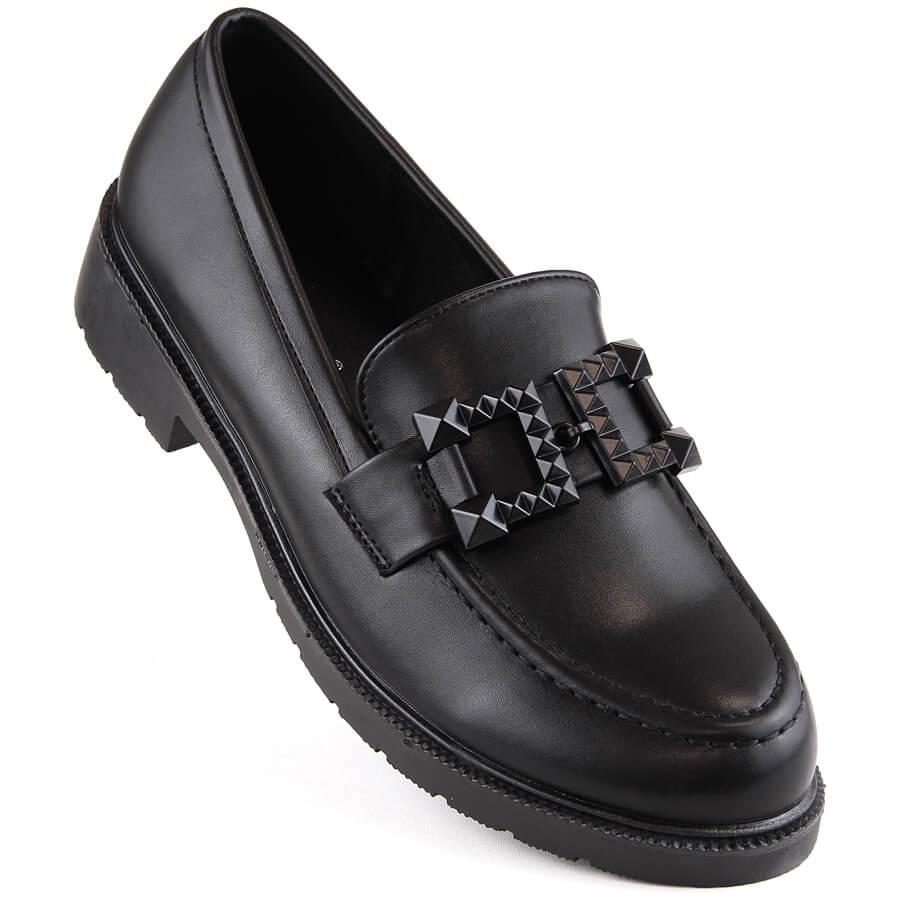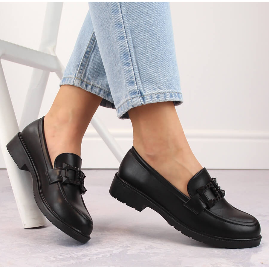 Yksityiskohdat: Naisten kengät, slip-on mokasiinit koristeena, musta S.Barski HY371