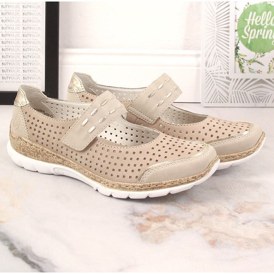 Yksityiskohdat: Naisten kesäiset nahkakengät tarranauhalla beige Rieker N4257-60
