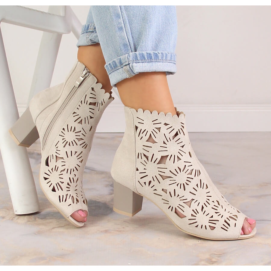 Yksityiskohdat: M. DASZYŃSKI Naisten kevät harjakattoiset peep toe saappaat beige M.Daszyński MR1954-10