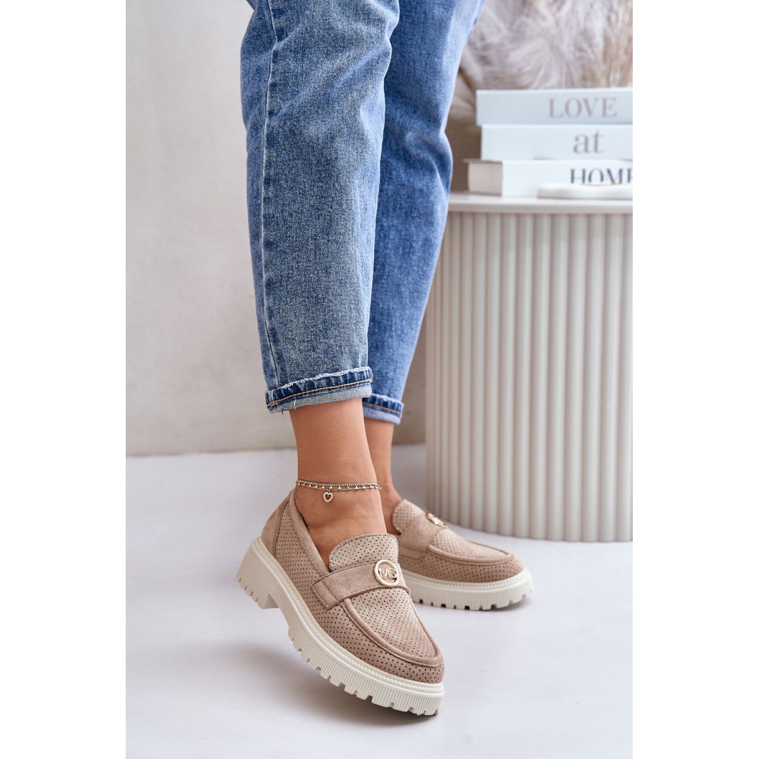Yksityiskohdat: Naisten khaki-tason mokasiinit beige