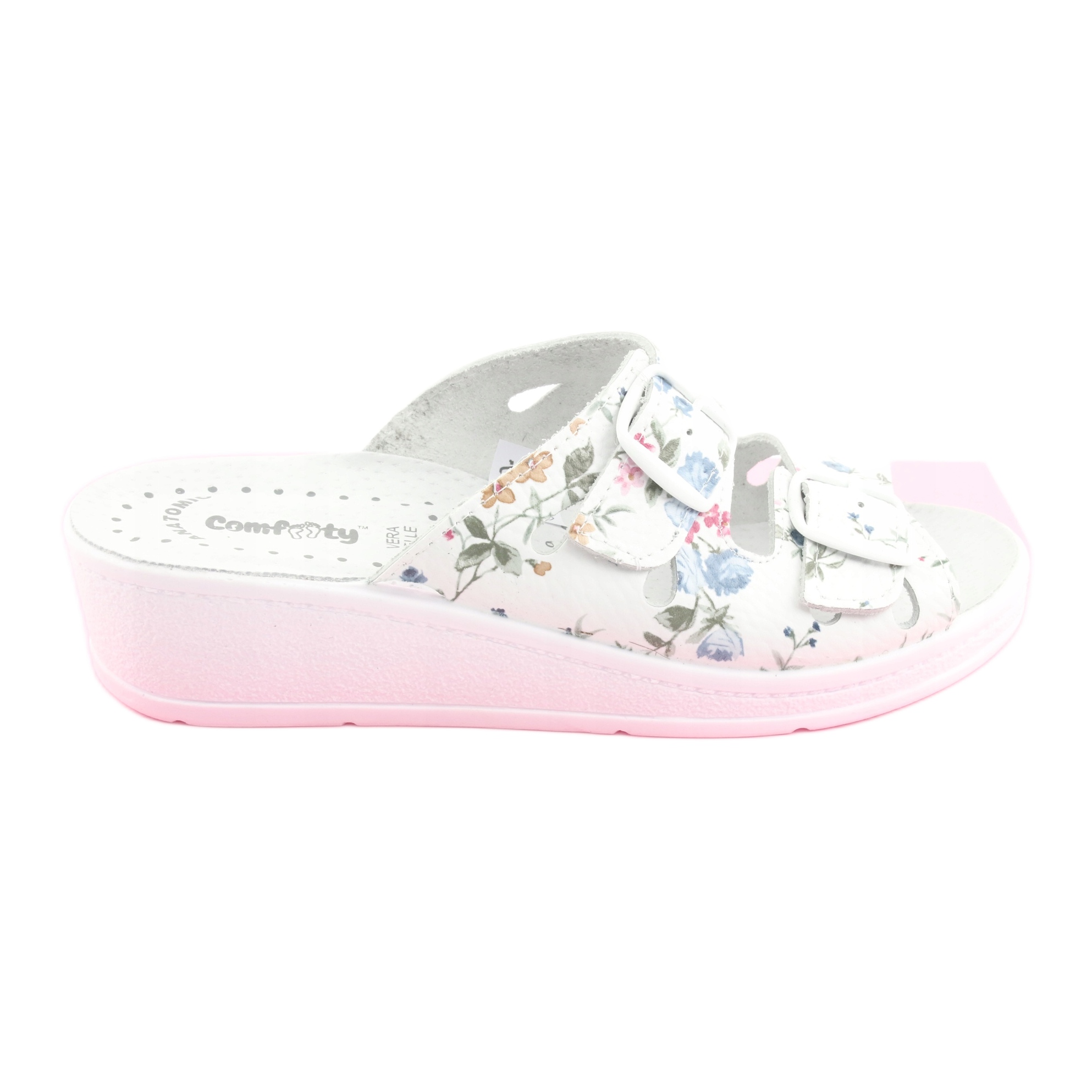 Yksityiskohdat: Naisten kiilatossut Comfooty Mia Flowers valkoinen