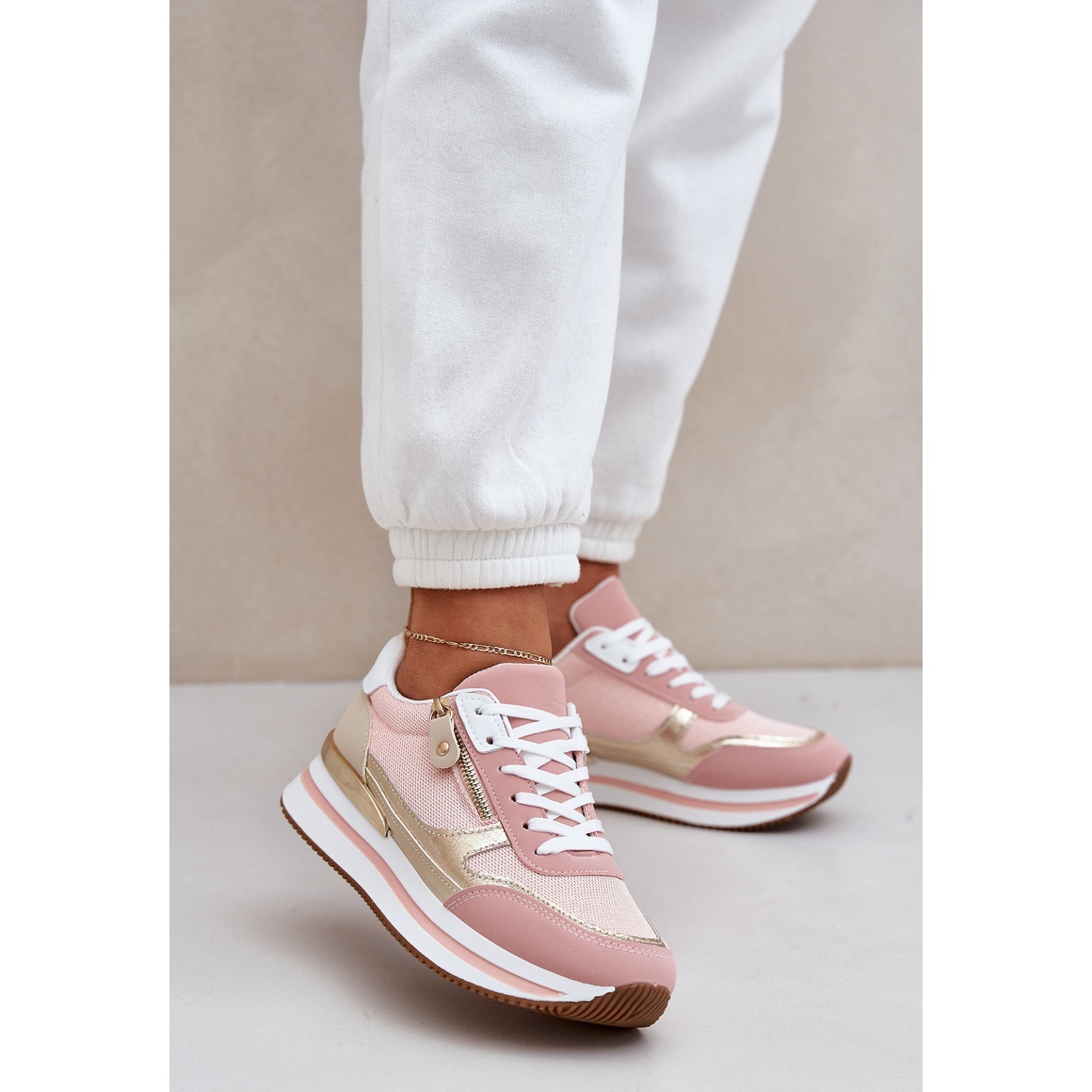 Näille kengille on ominaista matala korkeus ja vakaa alusta, jonka korkeus on 3 cm, mikä tekee niistä mukavia pitkiä käyttötunteja. Riippumatta siitä, oletko menossa kävelylle, ostoksille tai tapaamiseen ystävien kanssa, nämä urheilukengät ovat loistava valinta, joka rikastuttaa vaatekaappisi.