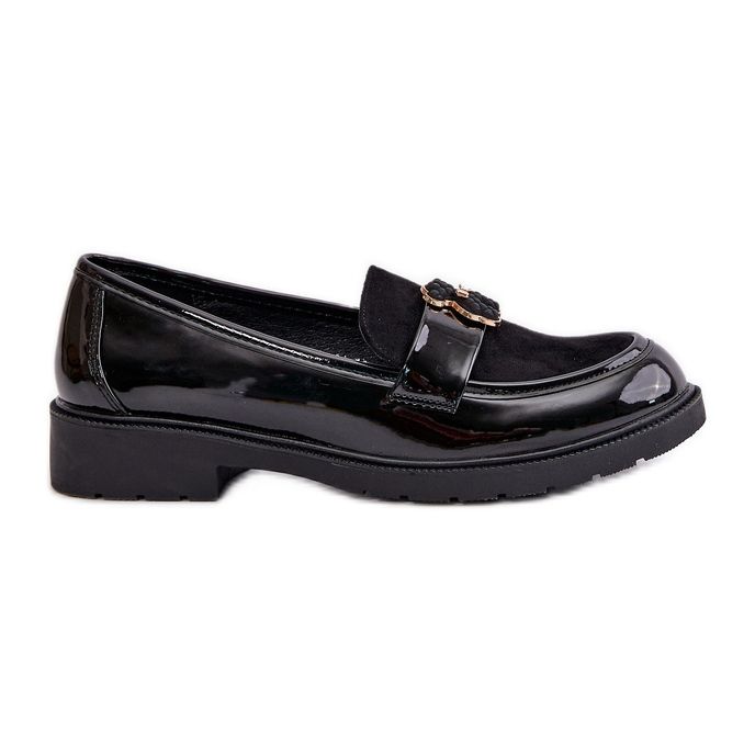 Yksityiskohdat: Naisten kiiltonahkaiset mokasiinit ja nalle, musta S.Barski HY42-339A