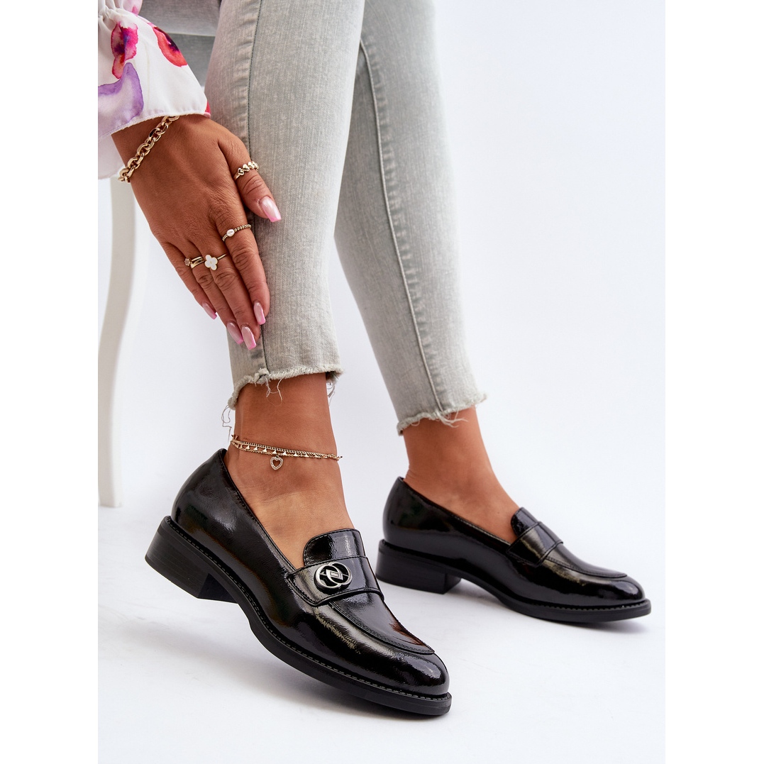 Yksityiskohdat: Naisten kiiltonahkaiset mokasiinit, musta Dilhela