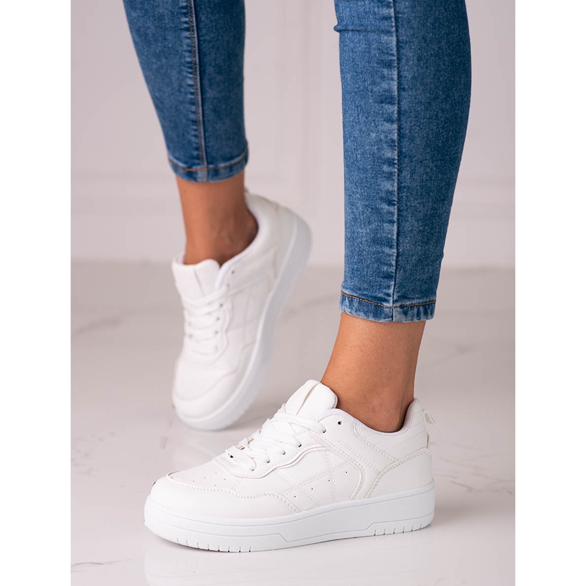 Löydä klassiset Shelovet naisten urheilulenkkarit, joissa yhdistyvät täydellisesti tyyli ja mukavuus! Korkealaatuisesta ekonahasta valmistetut valkoiset lenkkarit ovat täydellinen valinta kevääseen ja kesään. Niiden pehmeä, suljettu kantapää ja pyöreä varvas takaavat mukavuuden ja helppouden käyttää koko päivän.