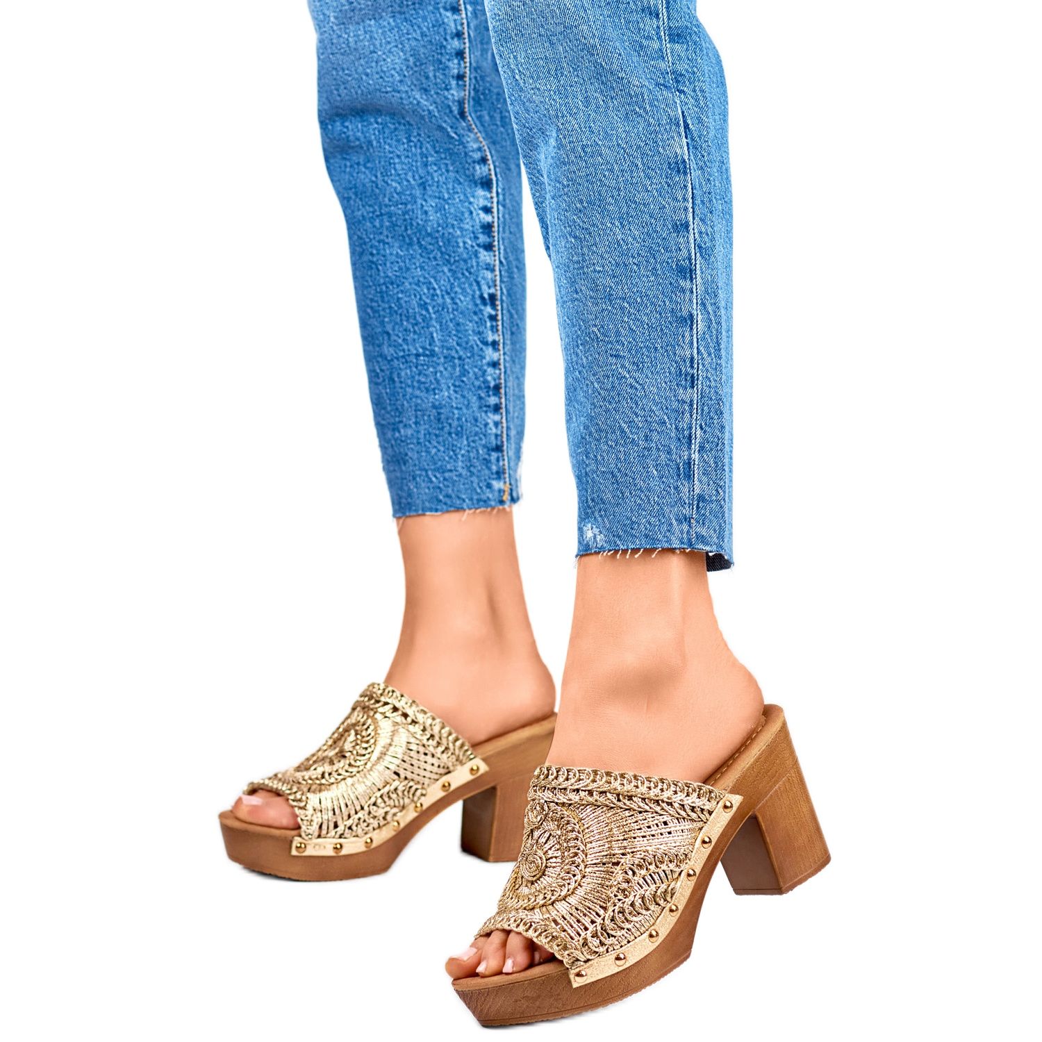Inna marka Naisten korkeakorkoiset varvastossut C388GO, kultaa keltainen