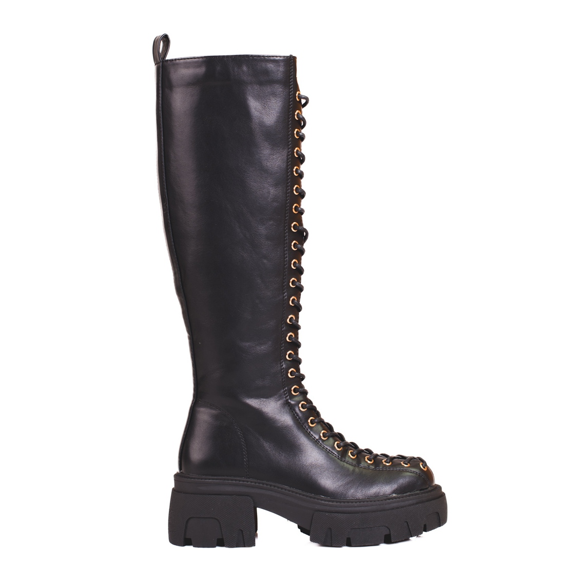 SHELOVET Naisten korkeat, nauhalliset Shelovet-saappaat musta