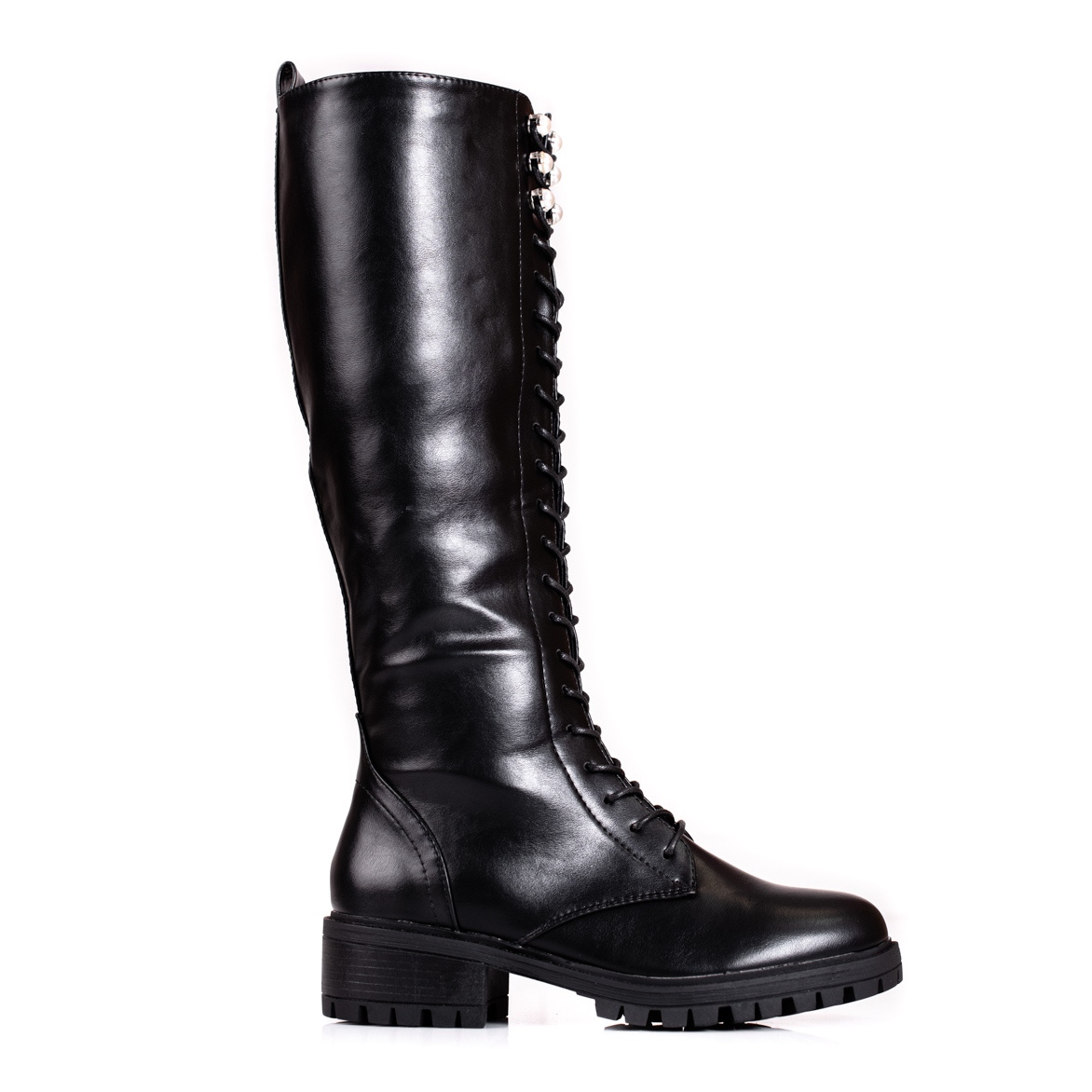 SHELOVET Naisten korkeat, nauhalliset Shelovet-saappaat musta