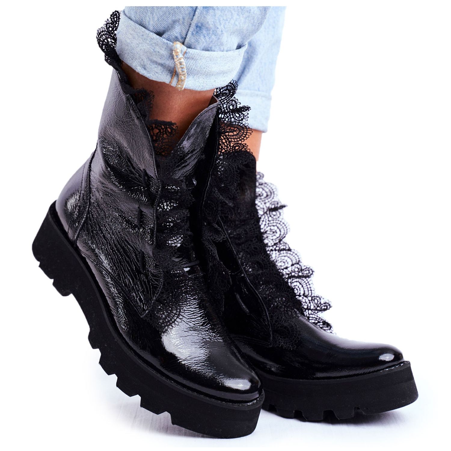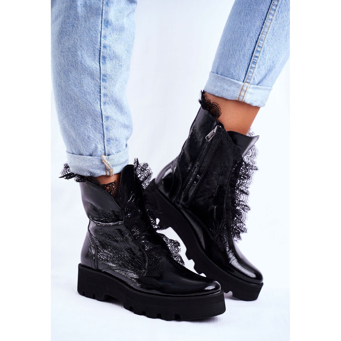 Luonnollisesta kiiltonahasta valmistetut saappaat on koristeltu koristeellisella pitsillä päällisen ympärillä, mikä antaa niille ainutlaatuisen luonteen. Luonnonnahasta valmistettu mukava sisäosa tarjoaa erinomaisen ilmanvaihdon ja mukavuuden, joten voit käyttää niitä useita tunteja tuntematta epämukavuutta.