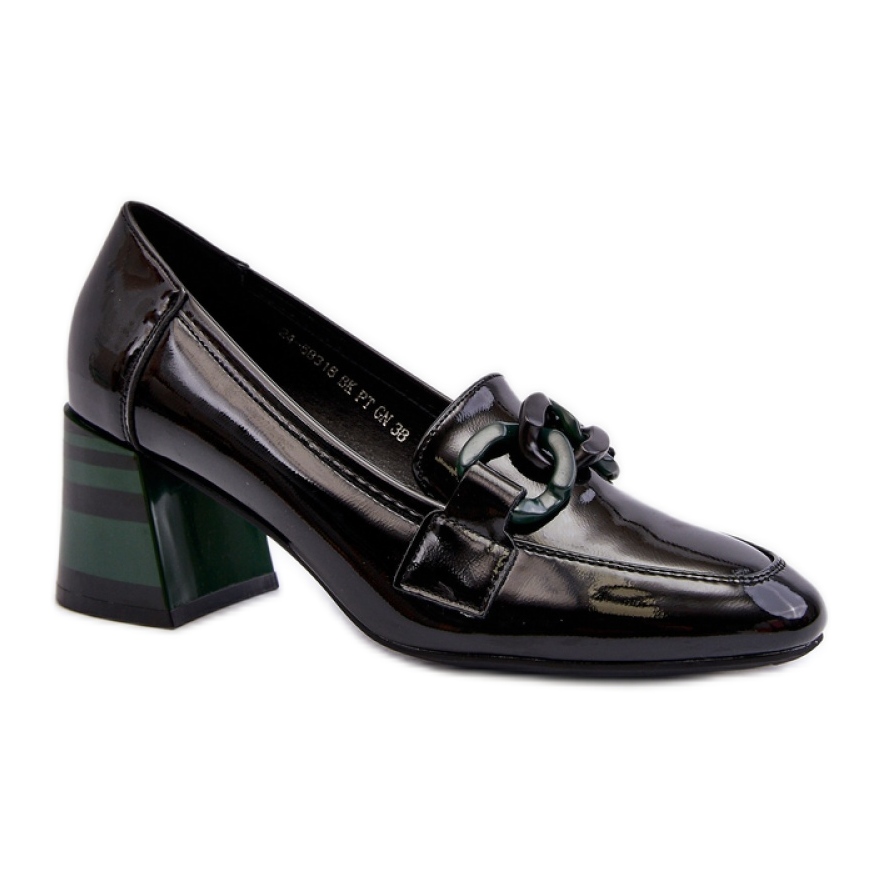 Esitämme tyylikkäät naisten pumput mustalla pylväällä, jolla on hienovarainen sisustus ketjun muodossa yläosan edessä. Nämä ainutlaatuiset kengät, jotka on valmistettu korkealaatuisesta luonnon nahasta, yhdistävät tyylit ja mukavuudet, mikä tekee niistä ihanteellisen valinnan sekä työ- että erilaisiin perhejuhlia varten.