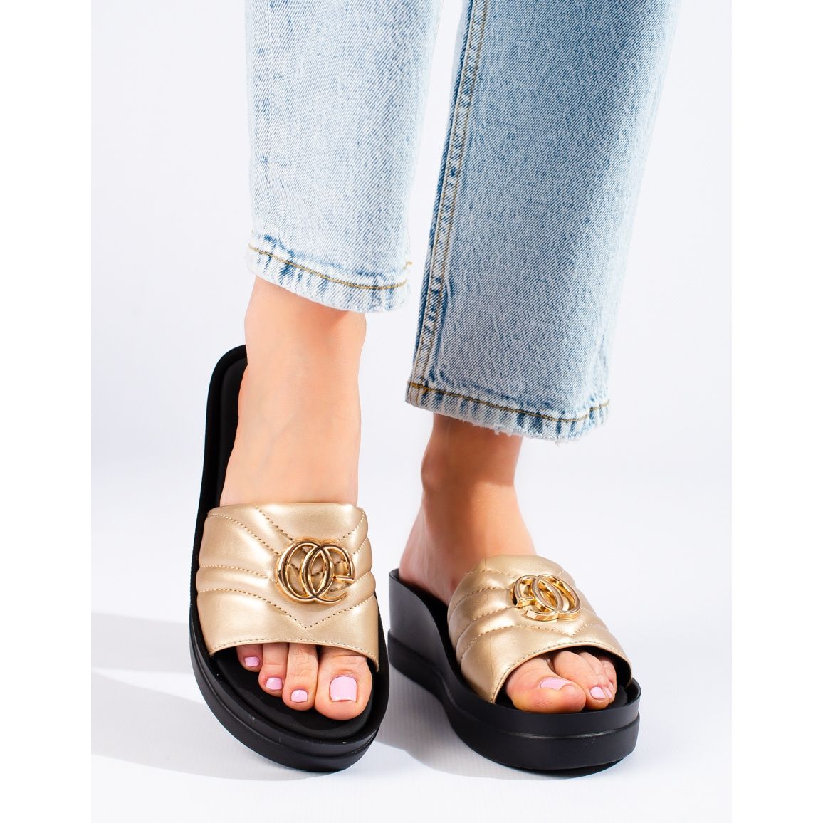 W. Potocki naisten kultaiset kiilavarvastossut - yhdistelmä mukavuutta ja eleganssia jokapäiväiseen käyttöön