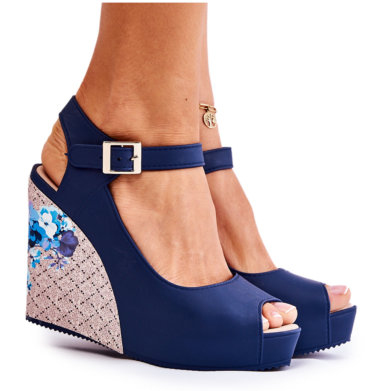 Yksityiskohdat: HV Naisten laivastonsiniset sandaalit Nemesis -kiilassa laivastonsininen