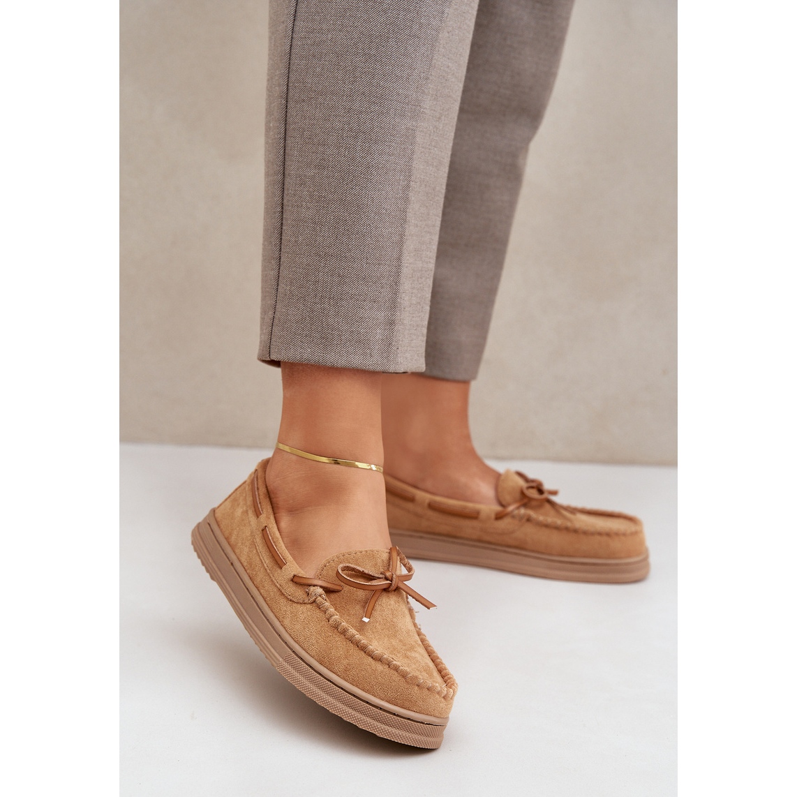 Tämä malli erotetaan myös pyöreällä varpalla, joka varmistaa sormille mukavuuden ja riittävän tilan. Liukukiinnike tekee kengien asettamisesta ja poistamisesta helppoa ja yksinkertaista. Beige -pohja yhdistettynä autenttisen mokkanan ruskean värin kanssa antaa mokkasiineille universaalin hahmon, joka on täydellinen jokaiselle vuodenajalle.
