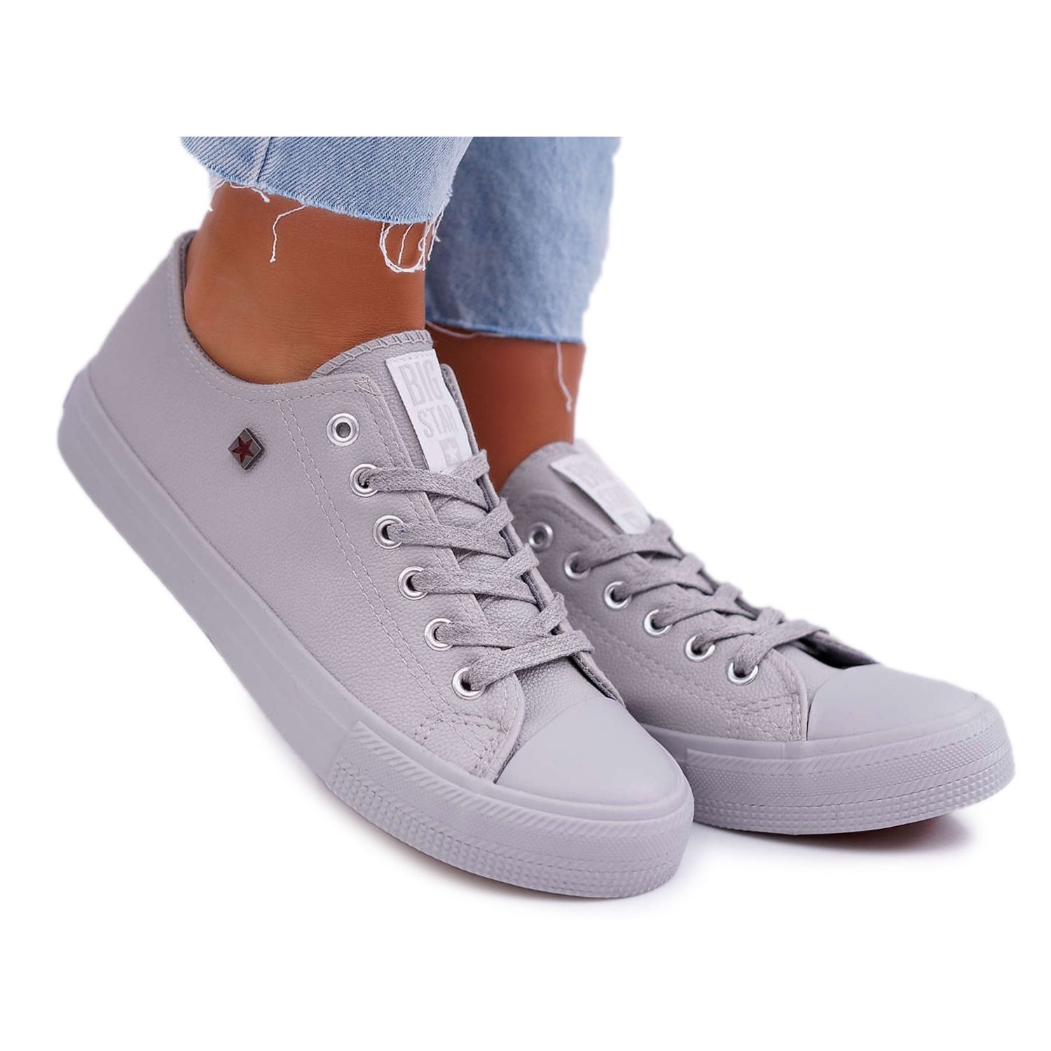 Löydä ajaton tyyli naisten Big Star -lenkkarit vaaleanharmaissa (malli EE274394). Nämä matalat, klassiset nauhalliset lenkkarit viittaavat 1970-luvun ikoniseen muotoiluun, joka on valloittanut muodin ystävien sydämet ympäri maailmaa jo vuosia. Liukumattoman pohjan ansiosta voit nauttia itsevarmasta askeleesta olosuhteista riippumatta.