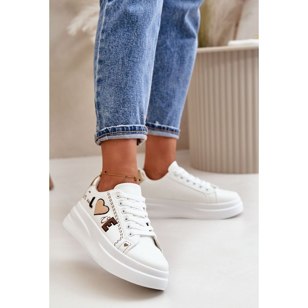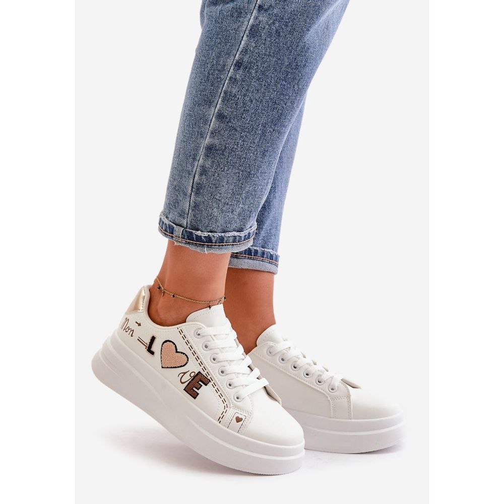 Yksityiskohdat: Naisten lenkkarit, joissa koristeellinen rakkauskirjoitus, valkoinen Orlian