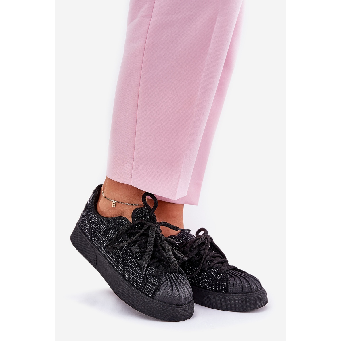 Yksityiskohdat: Naisten lenkkarit koristeltu mustalla laiturilla