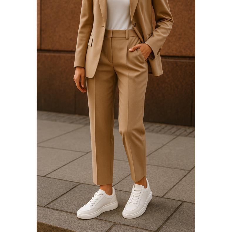 Suuntaus yhdistää puku lenkkarien kanssa valloittaa liiketoiminnan muotimaailman. Se on ihanteellinen ratkaisu naisille, jotka haluavat näyttää ammattimaisilta, tuntevat olonsa mukavaksi koko päivän. Valitse minimalistiset mallit neutraaleissa väreissä - valkoinen, musta tai beige. Nahka -lenkkarit lisäävät eleganssia, kun taas mokkanahka tuo pehmeyden. Muista mittasuhteista - valitse laajemmat housut massiivisemmat kengät, kapeammat mallit. Tämä ilme toimii erinomaisesti yrityskokouksissa, joissa luovuus lasketaan.