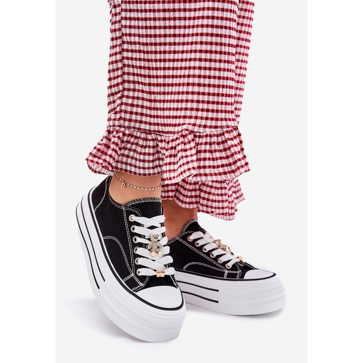 Löydä ainutlaatuinen tyyli naisten lenkkarien kanssa alustalla, joka yhdistää täydellisesti muodin ja mukavuuden. Nämä korkealaatuisesta tekstiilimateriaalista valmistetut mustat lenkkarit ovat päivittäin ihanteellinen valinta, joka tarjoaa paitsi mukavuuden, myös epätavallisen ilmeen. Massiiviselle alustalle asetettu he korostavat hahmoa, ja heidän moderni muotoilu tekee niistä täydellisen täydennys sekä rentoille että tyylikkäimmille tyylille.