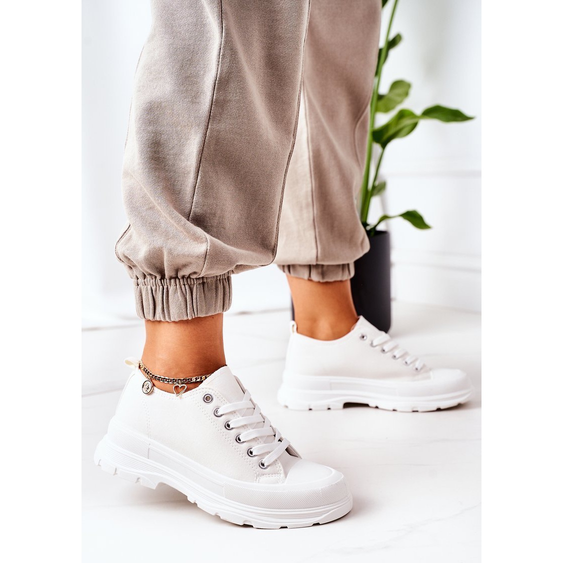 Naisten valkoiset Travel Time -lenkkarit ovat täydellinen valinta jokaiselle muodikkaalle naiselle, joka haluaa yhdistää mukavuuden moderniin tyyliin. Näissä trendikkäissä tennareissa on suuri 4,5 cm korkea kumialusta, joka ei vain lisää hieman korkeutta, vaan myös antaa vakautta kävellessä.