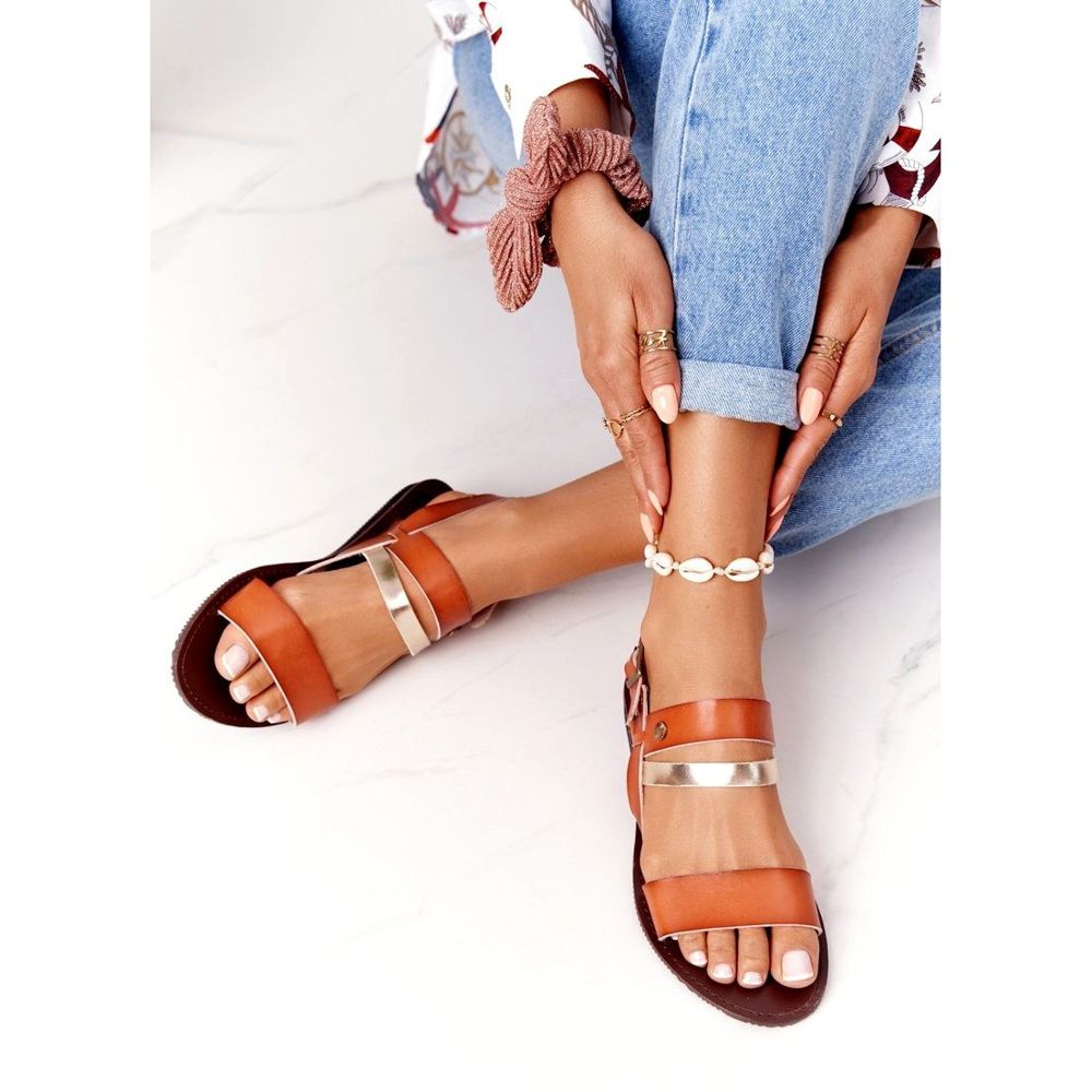 Yksityiskohdat: Naisten litteät sandaalit, ruskea ja kultainen Doris