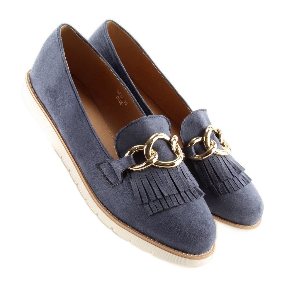 Tyylikkäät naisten laivastonsiniset G237 siniset mokasiinit ovat erinomainen valinta naisille, jotka arvostavat sekä mukavuutta että muodikasta muotoilua. Nämä tyylikkäät kengät erottuvat muista muodikkaan valkoisen pohjan ja hienovaraisten kultariipuksen ja tupsujen muodossa olevien koristeiden ansiosta, jotka antavat niille ainutlaatuisen luonteen.