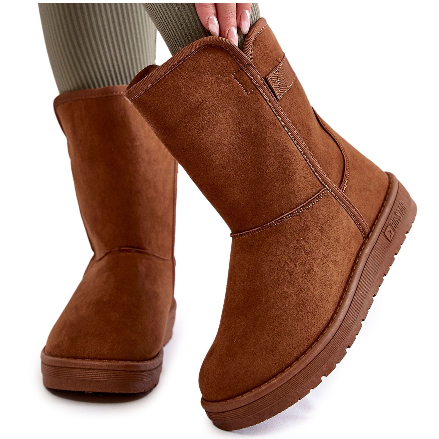 Naisten korkeat lumilaitteet Big Star KK274616 - ruskea, eristetty ja valmis talveksi. Tyylikäs, mukava ja käytännöllinen: valmistettu miellyttävästä kosketuskankaasta, pehmeällä turkisilla sisällä, mikä varmistaa lämpömukavuuden jopa kylminä päivinä. 3,5 cm: n korkea alusta eristää tehokkaasti kylmästä maasta, ja synteettinen pohja antaa hyvän suojan kosteutta vastaan.