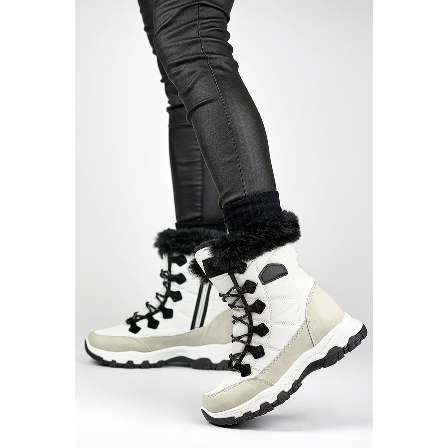 Yksityiskohdat: Naisten lumisaappaat turkisella ja vetoketjulla, valkoinen 9093W
