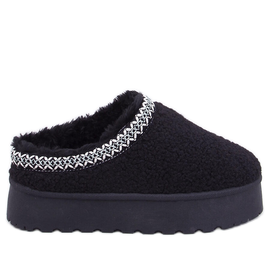 Yksityiskohdat: Naisten lyhyet lumisaappaat lampaannahalla ja brodeerauksella, musta