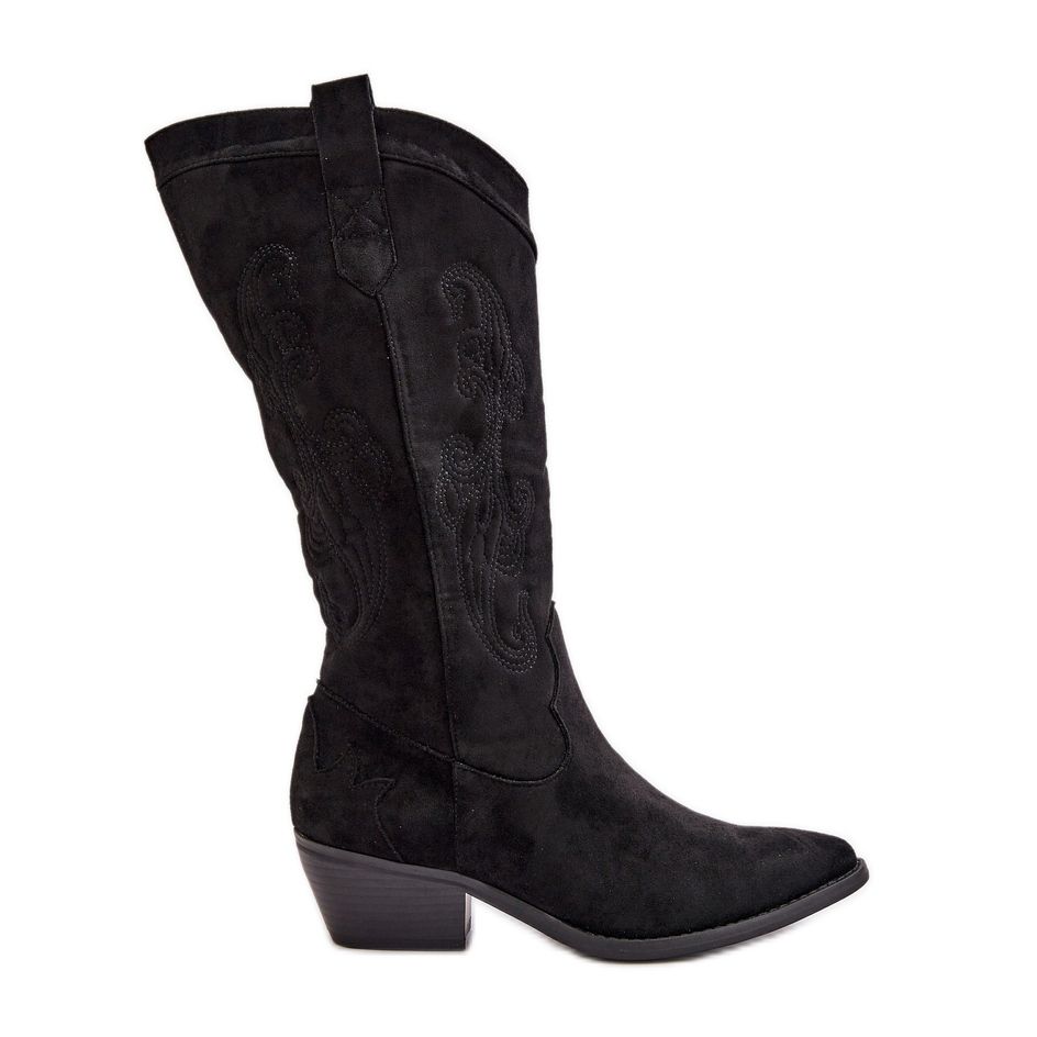 Yksityiskohdat: Naisten matalakorkoiset Cowboy-saappaat, jotka on valmistettu Eco Suede Black Ligeliasta musta