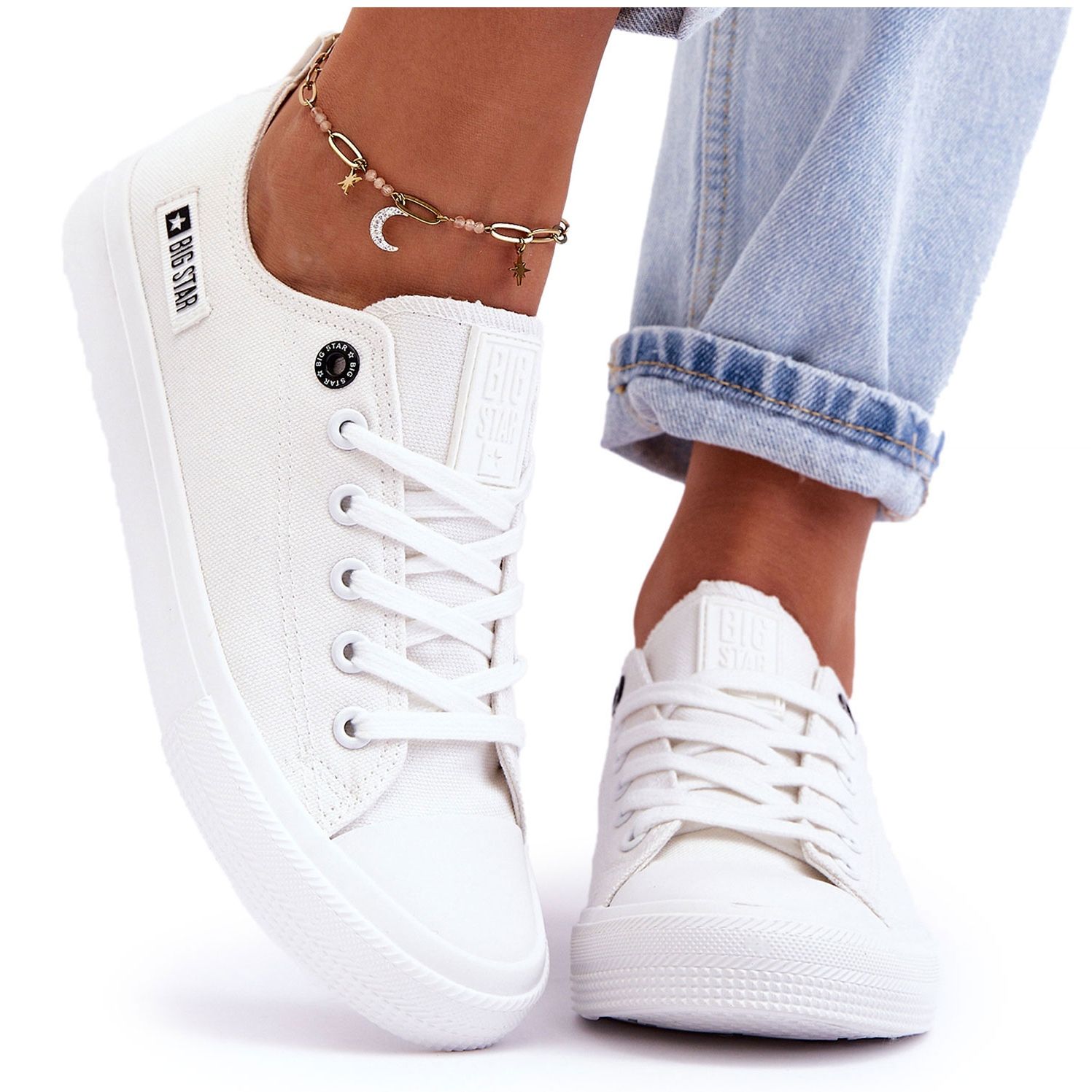 Tutustu valkoisiin naisten tennareihin Big Star KK274008 - täydellinen valinta jokaiselle mukavuuteen ja tyylikkyyteen keskittyvälle naiselle. Nämä klassiset matalat lenkkarit yhdistävät tehokkaasti eleganssia arjen mukavuuteen, mikä tekee niistä täydellisen täydennyksen mihin tahansa rentoon tyyliin.