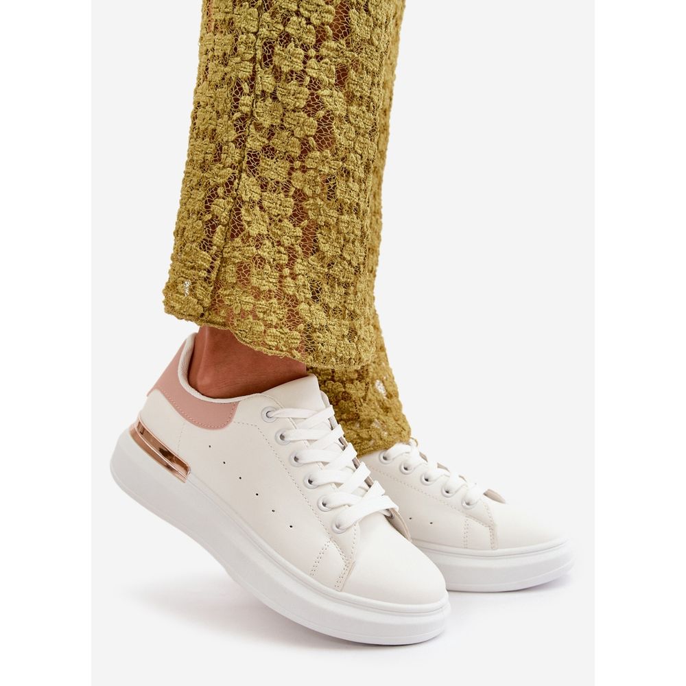 Yksityiskohdat: Naisten matalat tennarit alustalla eko-nahasta, valkoista ja vaaleanpunaista, Nevelena valkoinen