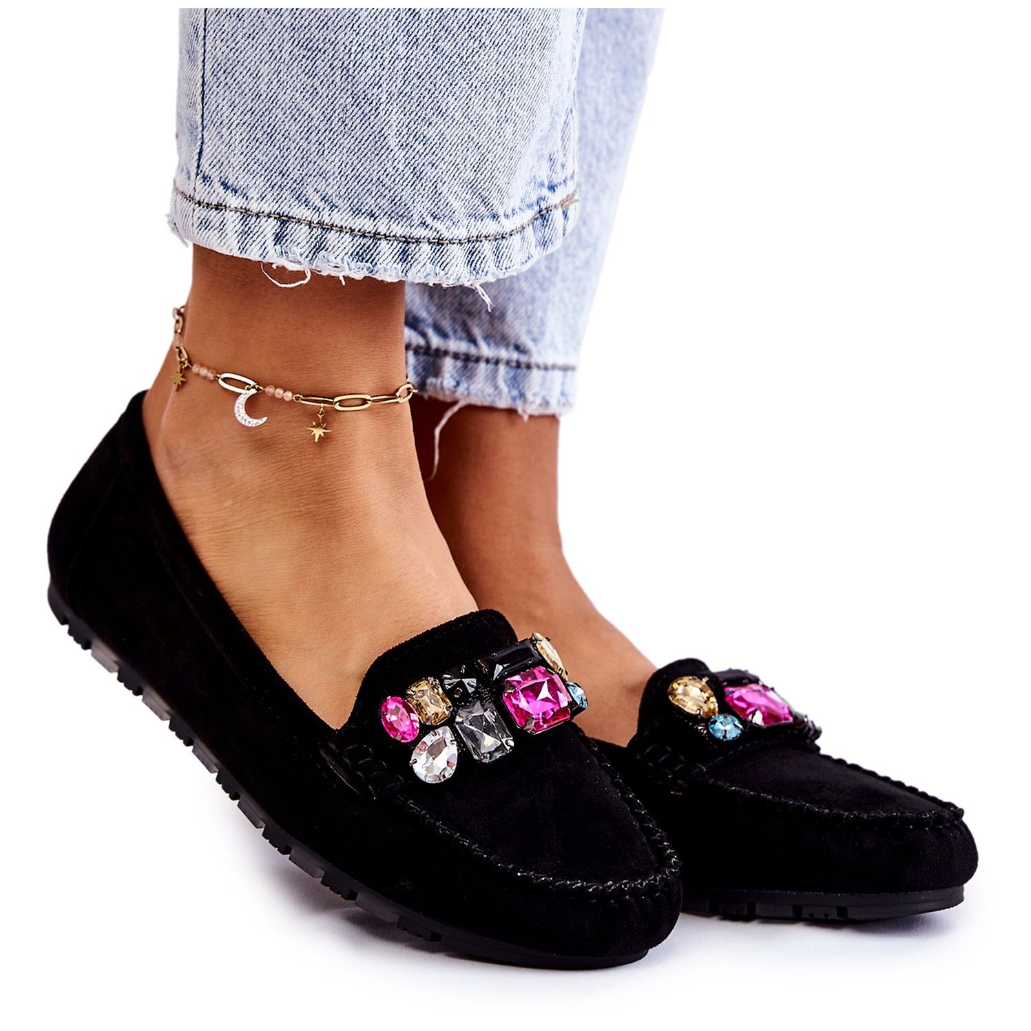 Tyylikkäät ja mukavat – juuri sellaisia ovat Janetta Naisten mokkanahkaiset mokkasiinit, joissa on koristelu mustana. Nämä mokasiinit on valmistettu korkealaatuisesta ekologisesta mokkasta, ja ne tarjoavat paitsi käyttömukavuuden, myös elegantin ulkonäön. Edessä olevat koristekivet antavat niille ainutlaatuisen viehätyksen, joten ne sopivat täydellisesti moniin eri tyyleihin.