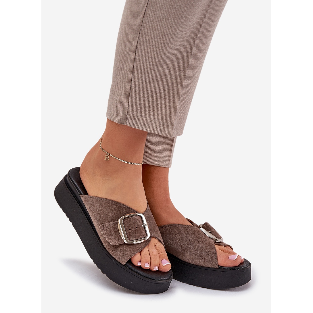Zazoo Naisten mokkanahkaiset flopsit soljella Zazoo 3019 Brown -alustalla ruskea