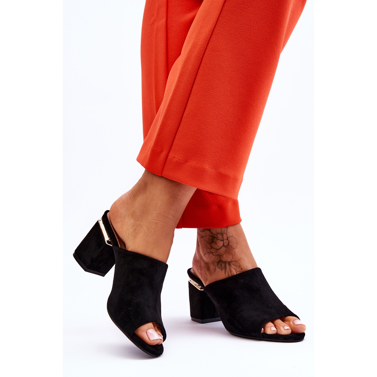 Yksityiskohdat: Vinceza Naisten mokkanahkaiset korkeakorkoiset tossut, mustat Carter