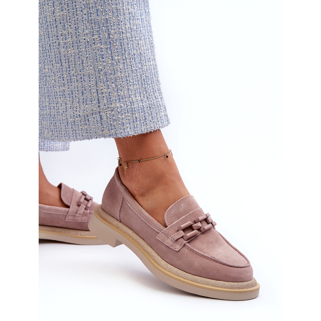 S.Barski S.Barski Naisten mokkanahkaiset mokasiinit tasaisella kantapäällä koristeella D&A TW101 Dirty Pink vaaleanpunainen