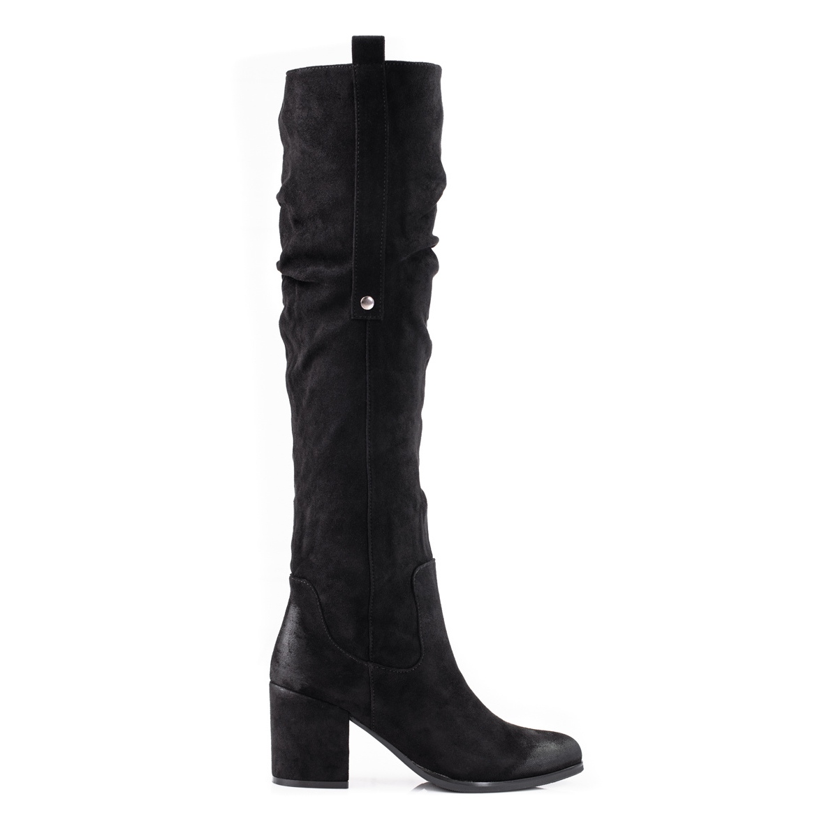 Yksityiskohdat: Naisten mokkanahkaiset Shelovet mustat saappaat