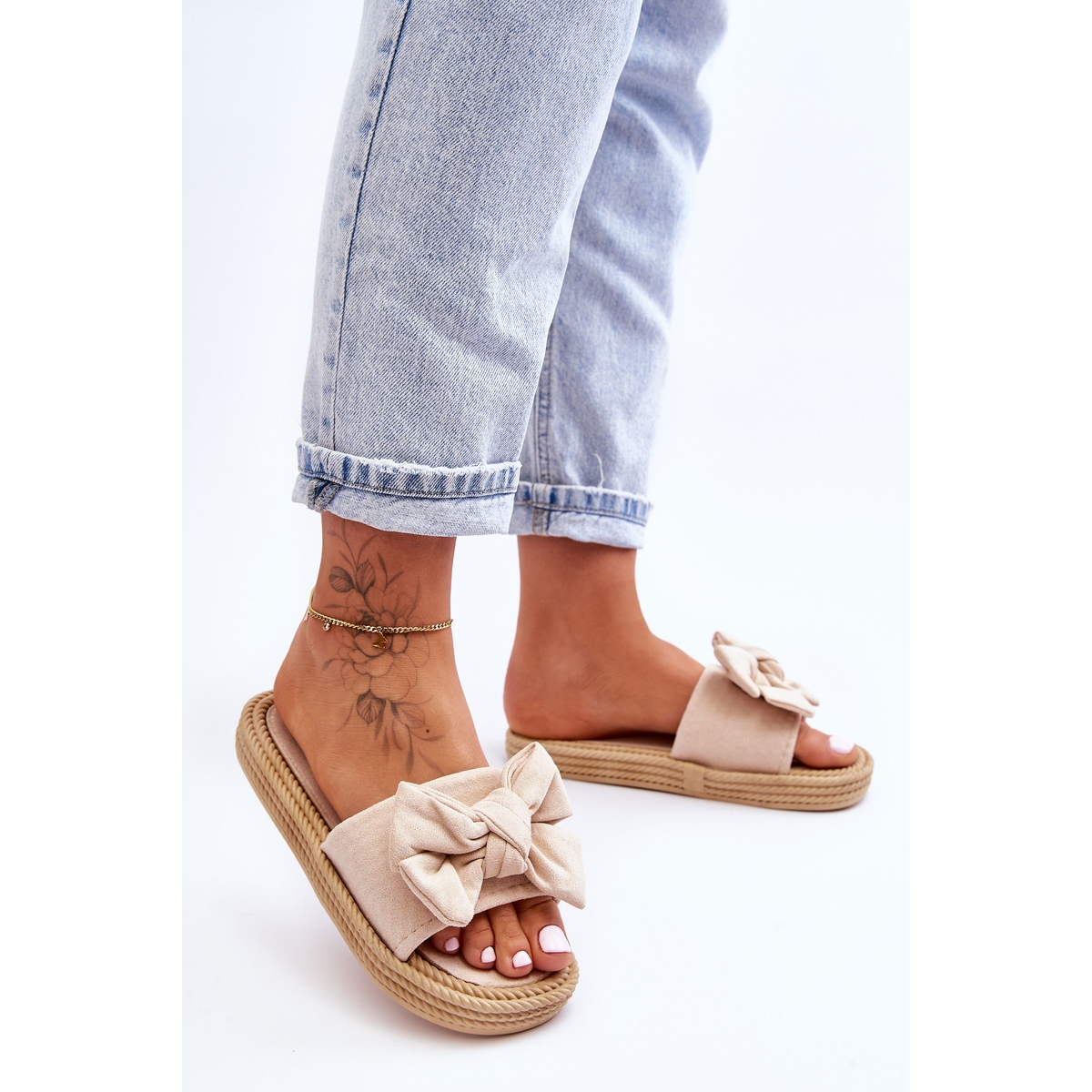 Yksityiskohdat: FK1 Naisten mokkanahkaiset tossut, joissa on rusetti beige aita