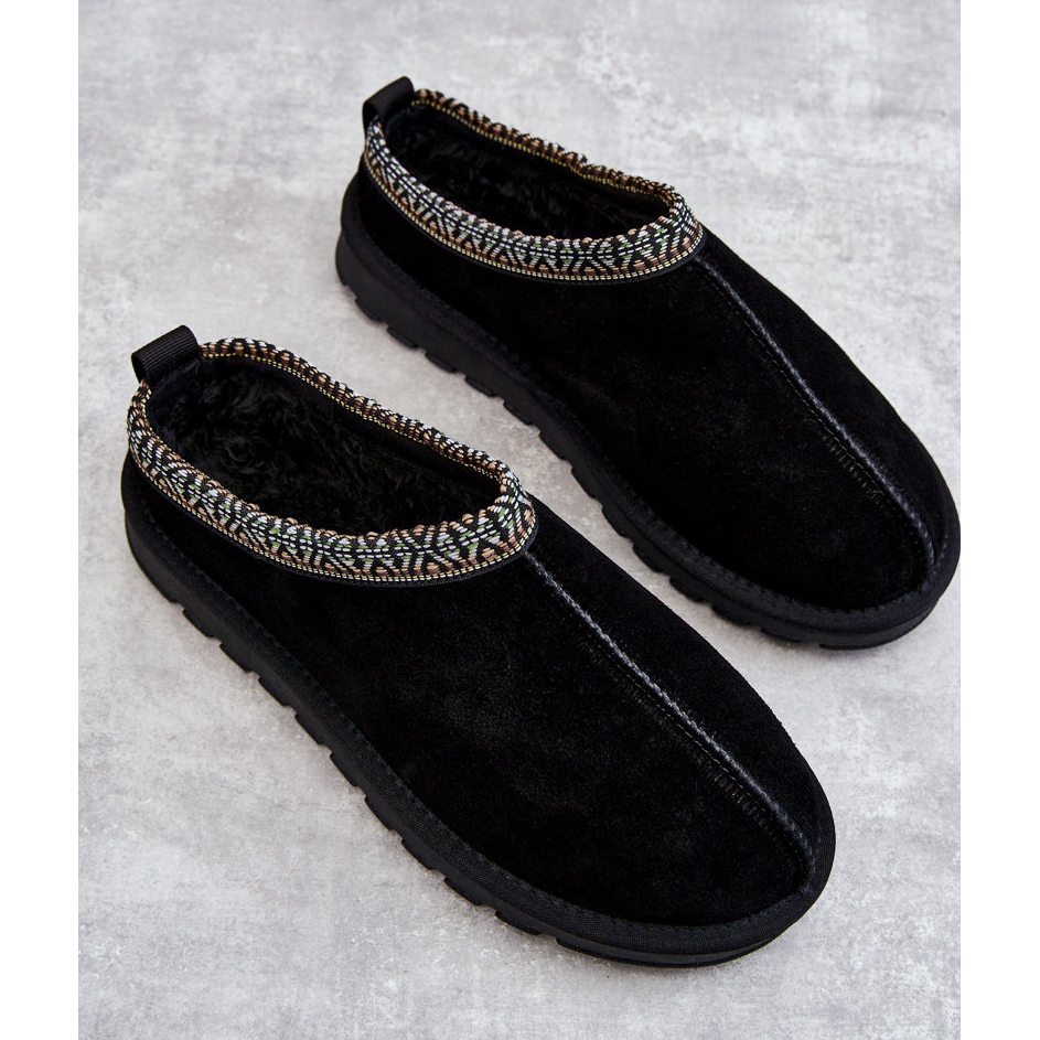 Yksityiskohdat: Naisten mokkanahkaiset tossut, joissa on turkista musta Buffe