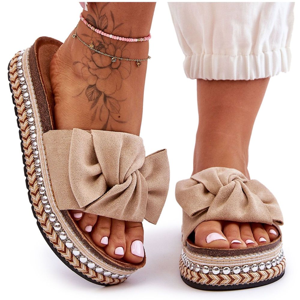 Naisten mokkanahkaiset tossut rusetilla beige Lauria beige - täydellinen lisä kesävaatekaappiisi