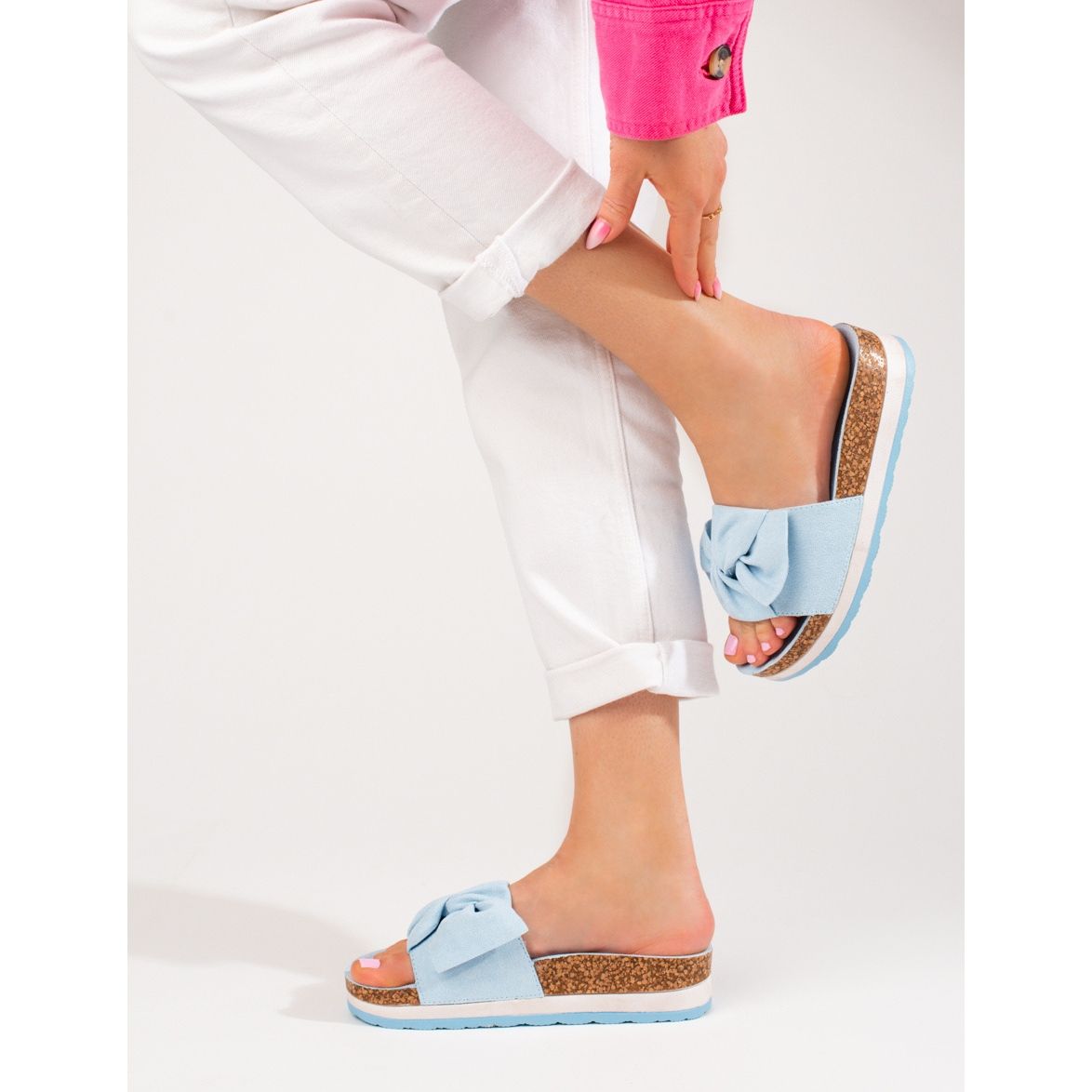 Kaunis rusetti lisävarusteen yläosassa lisää viehätysvoimaa ja tekee niistä täydellisen elementin rentoon tyyliin. Sinisen värin ja minimalistisen muotoilun ansiosta ne on helppo yhdistää erilaisiin asuihin - kesämekoista farkkuihin.