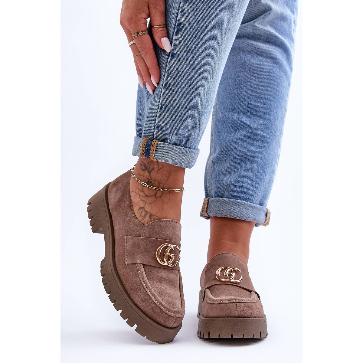 Tyylikkät, yleiset kengät, jotka on valmistettu luonnollisesta mokkanahasta. Laitetulle tasolle upotettu malli ja vakaa, litteä kantapää, jonka korkeus on 4 cm, mikä varmistaa mukavuuden koko päivän. Sisustus, joka on vuorattu luonnollisella nahkapohjalla, ja hankaus -resistentti kumipohja takaa hyvän otteen. Kielen alla on käytännöllinen supistava pyytäjä, joka mukauttaa kengän jalkaan, ja hienovaraiset suihkukoneet lisäävät hienovaraisen muodikkaan.